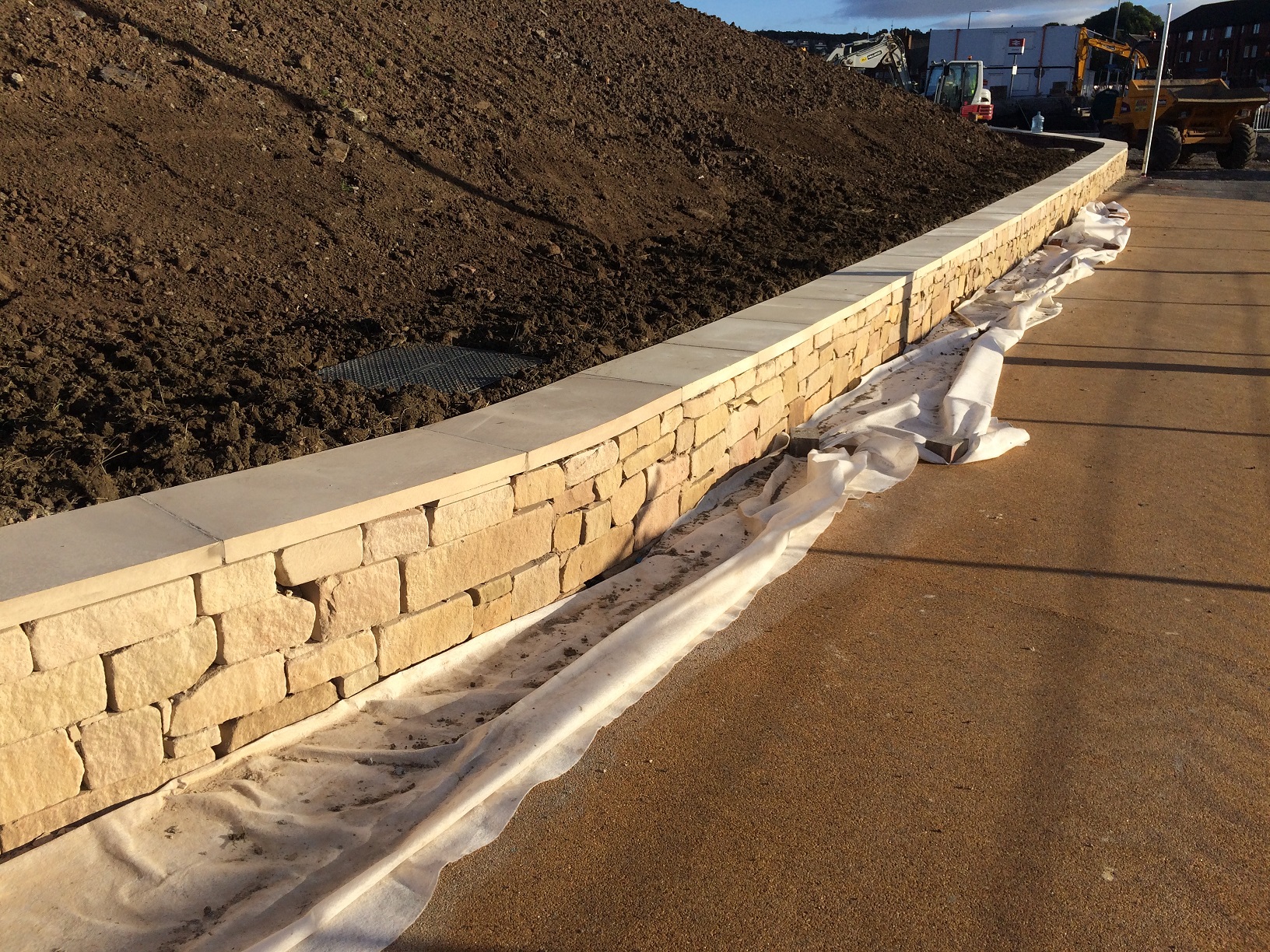 Gourock Public Realm Works in Civil Engineering, Stonework Prepare site, build foundations and construct low seating walling using engineering brick, new sandstone facing and cope. Construct of gabion walling to shore front.